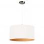 Höhenverstellbare Pendelleuchte SIMPLE ROUND ONE 40 mit Lampenschirm weiß aus Baumwolle - Innenseite gold und schwarzem Textil - Elektrokabel Ein glanzvoller Auftritt in runder Form, schlicht und elegant. Die Hängelampe weiß gold aus der Serie SIMPLE ROUND besticht durch ihren modernen Loftcharakter. Diese weiß goldene Hängeleuchte können Sie mit allen handelsüblichen Leuchtmitteln bestücken. Die goldene Innenseite des Lampenschirms sorgt für eine warme weiche angenehme Lichtatmosphäre im Raum. Leuchtmittel sind im Lieferumfang nicht enthalten. Bitte beachten Sie: Wir bieten Ihnen fachmännische Beratung für Lampen und Leuchten telefonisch oder per E-Mail an. | | | • Material: | Baldachin Nickel gebürstet, Textilkabel schwarz, Lampenschirm Baumwolle | | • Farbe: | weiß, Innenseite Lampenschirm gold | | • Durchmesser: | 40 cm | | • Höhe: | 20 cm | | • Abhängung: | 50 - 90 cm | | • Fassung: | E27 | | • Leuchtmittel: | 1 x max. 60W (exklusive) | |